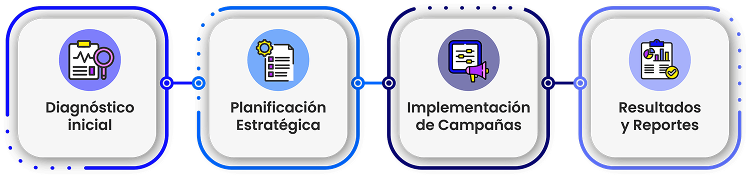 Tras la aprobación del plan de trabajo, iniciaremos la implementación de campañas y optimización continua para maximizar la generación de resultados: leads – ventas.